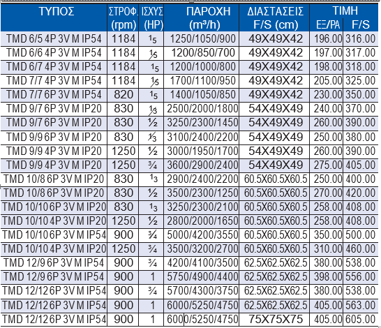 Διπλής Αναρρόφησης Χαμηλής Πίεσης Τύπου Σιρόκο Τριών Ταχυτήτων