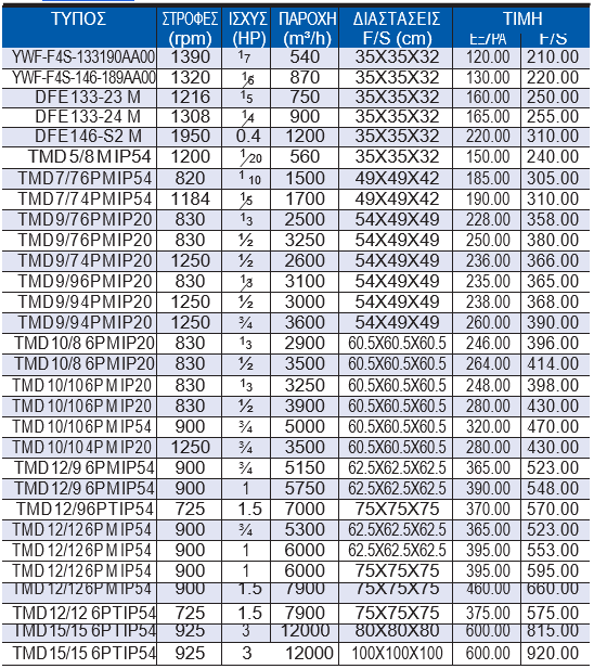 •Στην τιμή του εξαεριστήρα συμπεριλαμβάνονται οι βάσεις στήριξης.